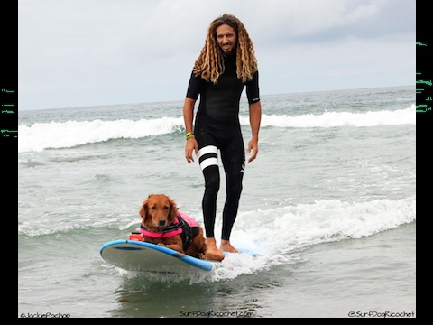 Ricochet is one of dog surfing’s biggest contributors to charity. She has raised through her surfing, it’s over $450,000. In this video, Surf dog Ricochet grants Make-A-Wish for Caleb. Caleb …